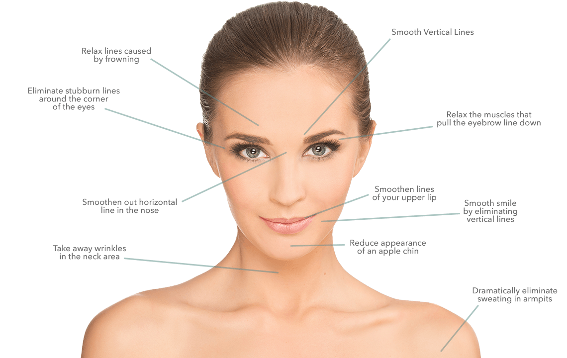 Botulinum neurotoxin type A (BoNTA), are anti-wrinkle injections that work by temporarily relaxing the nerves that stimulate the muscles you use when you make facial expressions. This treatment stops the muscles from contracting. As a result, the overlying skin becomes smooth, more relaxed and the wrinkles soften.